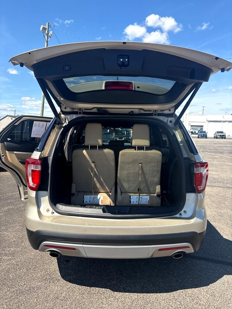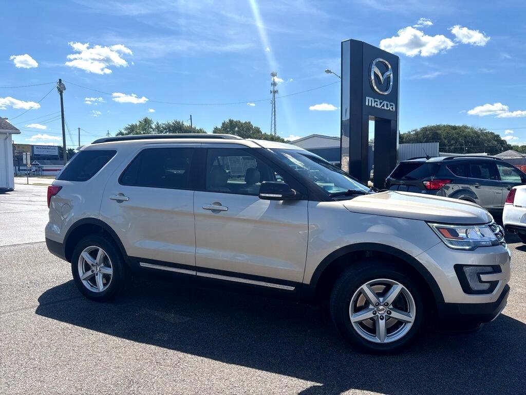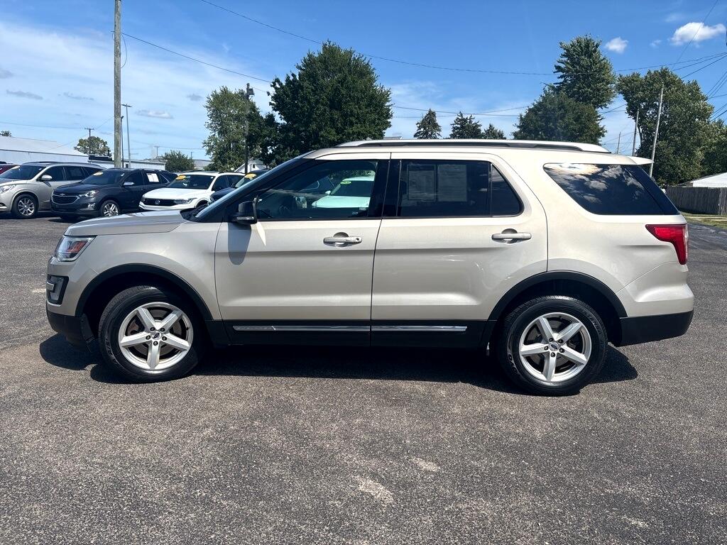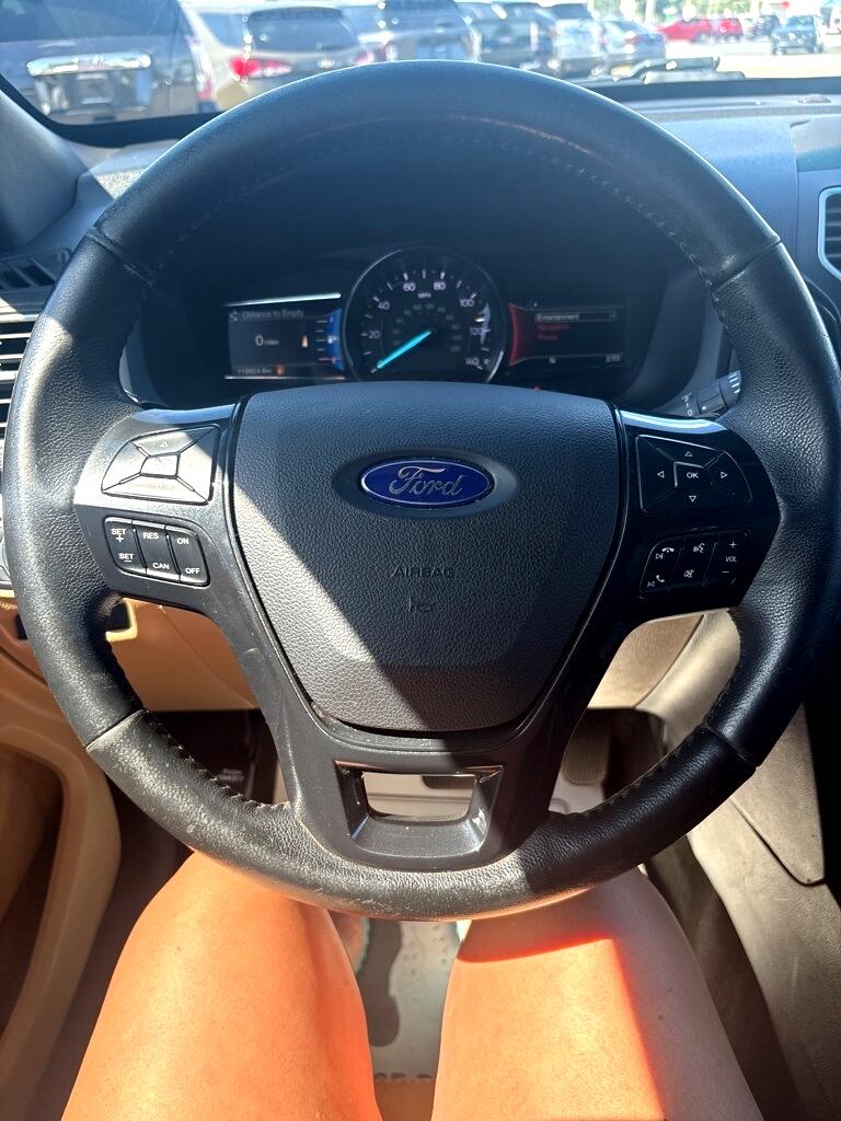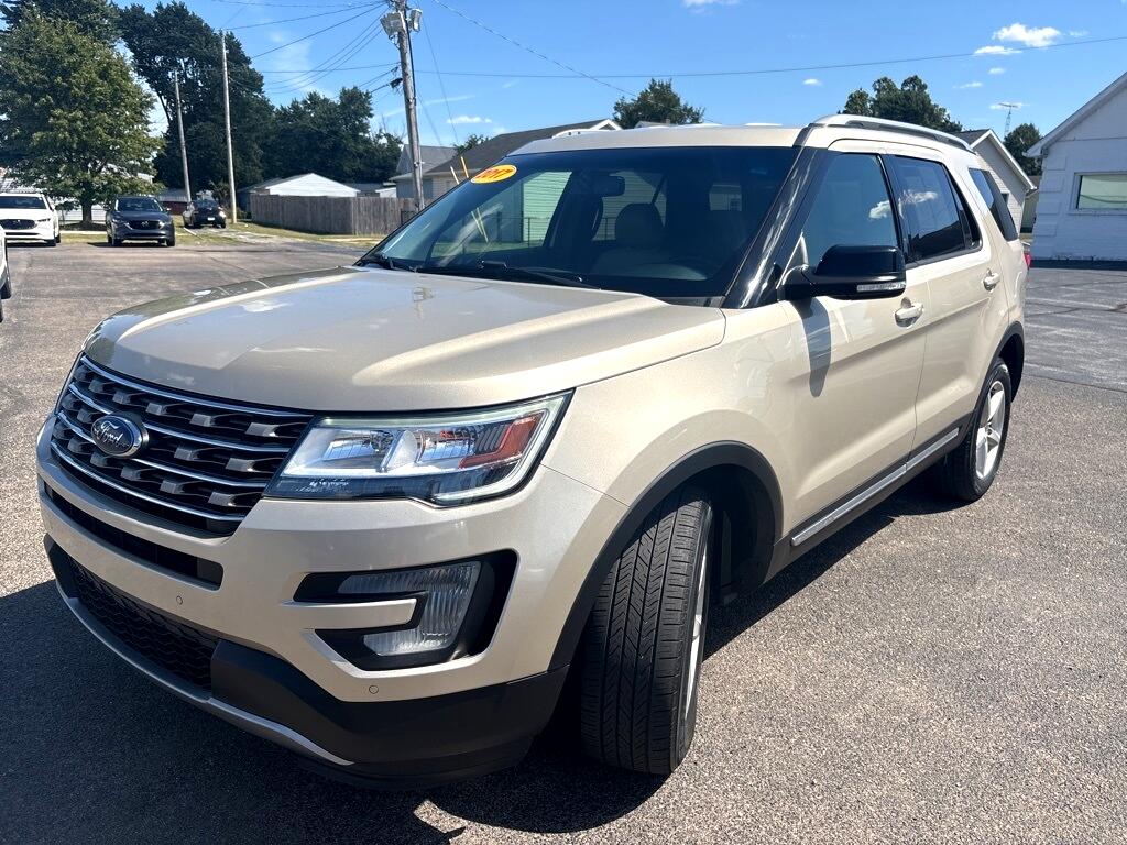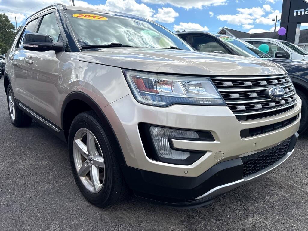 Get ready to cruise in style with this Gold 2017 Ford Explorer! This SUV is packed with all the bells and whistles you could possibly want, including leather heated bucket seats to keep you cozy on those chilly mornings. With the XLT Technology Feature Bundle, BLIS Blind Spot Information System, and Hands-Free Foot-Activated Liftgate, convenience is at your fingertips. The premium audio system will keep you jamming to your favorite tunes as you hit the road with confidence thanks to the Forward Sensing System and SYNC Communication & Entertainment System. This beauty even comes equipped with a Voice-Activated Touchscreen Navigation System, ensuring you never get lost on your adventures. Let's not forget about the sleek 18'' 5-Spoke Painted Aluminum Wheels and the Roof Rack rails for added style and practicality. Worried about the car's history? No need to stress as a CarFax report is available for this gem. Don't miss out on the opportunity to make this versatile and luxurious Ford Explorer yours today!