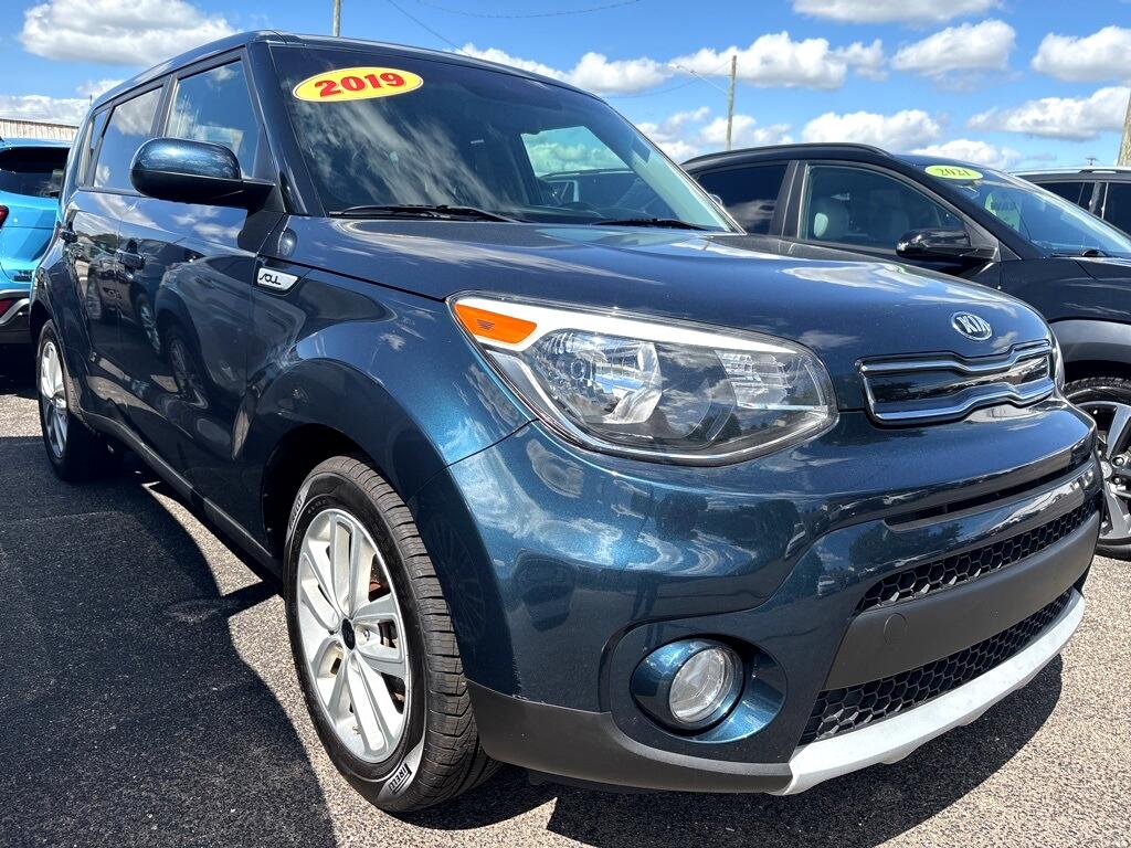 Get ready to hit the road in style with this sleek Blue 2019 Kia Soul! This fun and funky car is packed with personality and ready to take you on all your adventures. With its sporty 17'' Alloy Wheels, you'll turn heads everywhere you go. Slip into the comfortable Cloth Seat Trim and adjust the 6-Way Adjustable Driver's Seat to find your perfect driving position. Pump up the jams with the Radio: AM/FM/MP3 Audio System, complete with Apple CarPlay & Android Auto for all your music needs. Whether you're cruising around town or hitting the highway, this Soul has everything you need for a smooth ride, from the 4-Wheel Disc Brakes to the Speed-sensing steering. Plus, stay safe and secure with features like Traction control, ABS brakes, and Dual front impact airbags. With a Carfax report available, you can purchase with peace of mind, knowing this Blue 2019 Kia Soul is ready to be your trusty companion on the road ahead. Don't miss out on this incredible deal – come take a test drive today!