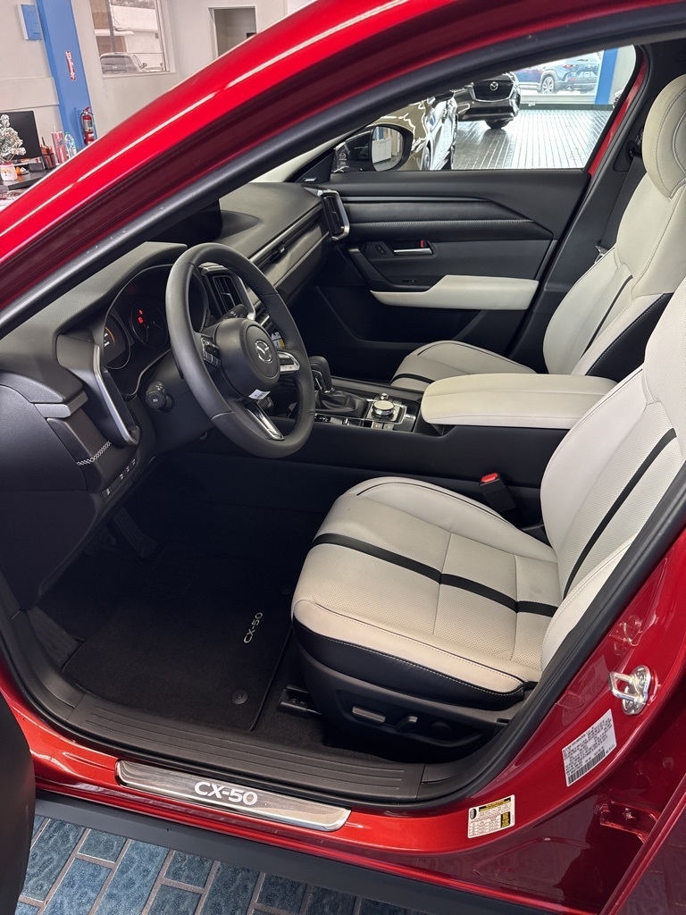 You'll feel confident behind the wheel knowing that this Mazda CX-50 is equipped with all-wheel drive, perfect for tackling any terrain or weather conditions. And with the included surround-view camera system, parking in tight spots is a breeze.